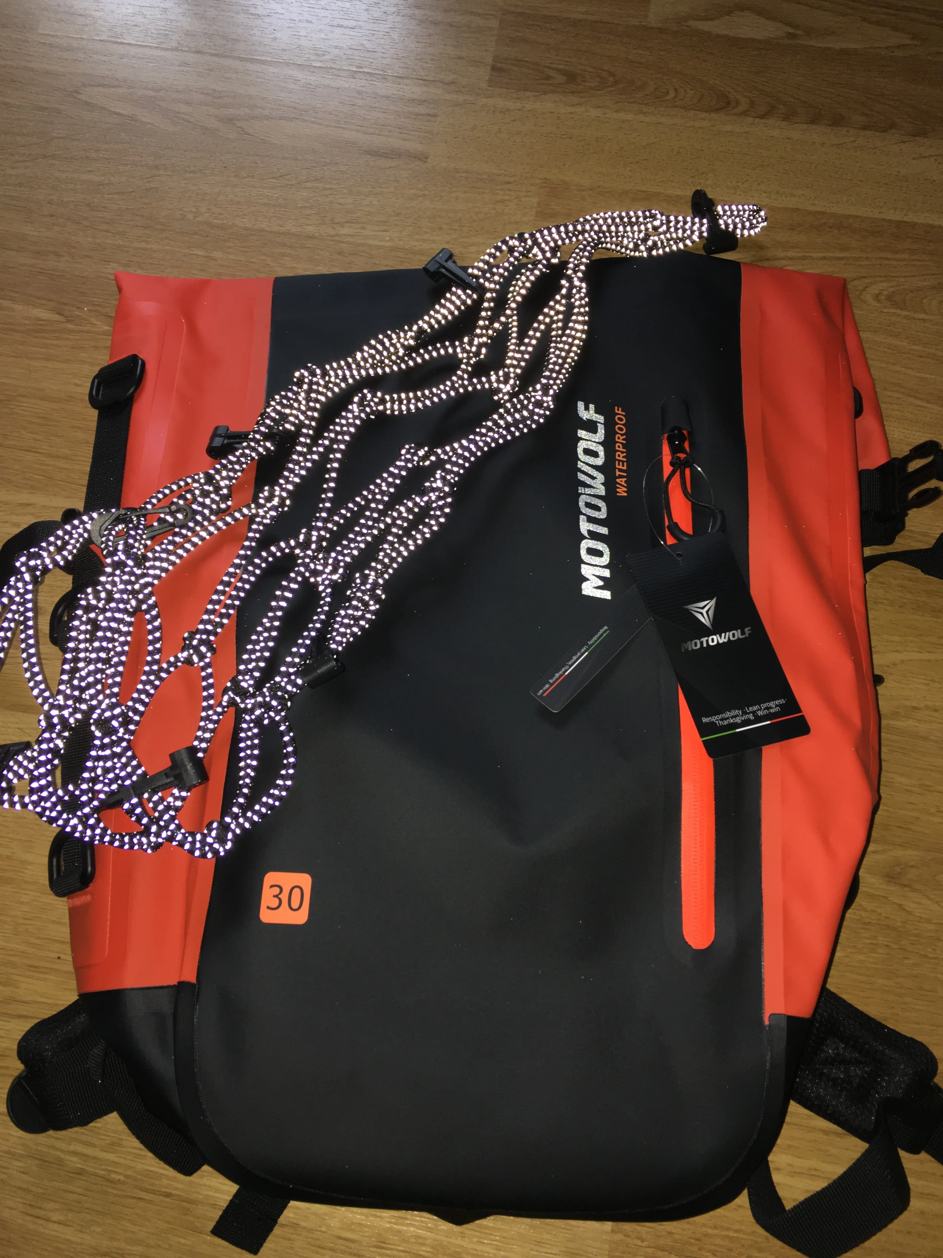 Really fast shipping compared to a few years ago when it took months. Very spacious backpack, well-made, rigid and definitely waterproof. It doesn't have internal compartments but honestly I wasn't interested. I'm satisfied with the product. I bought a small bag from the same brand to attach to the engine guard of my Transalp, fantastic.